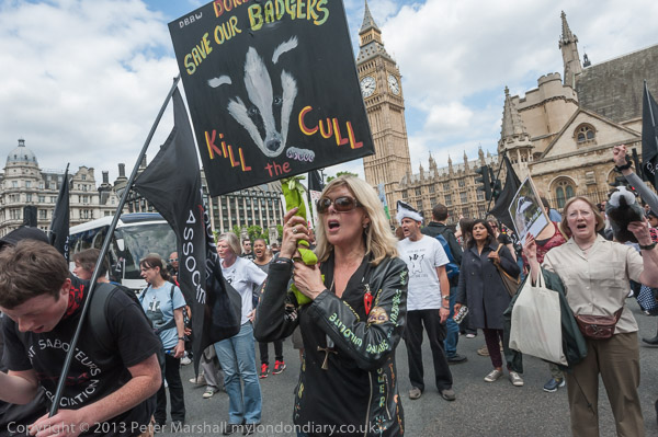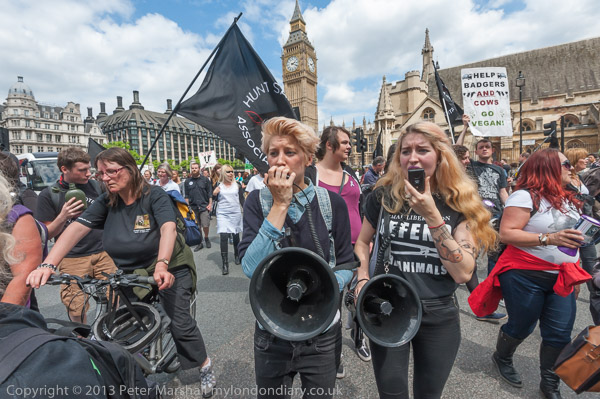 Among the suporters were Hunt Sabs with black banners
