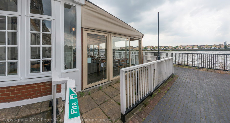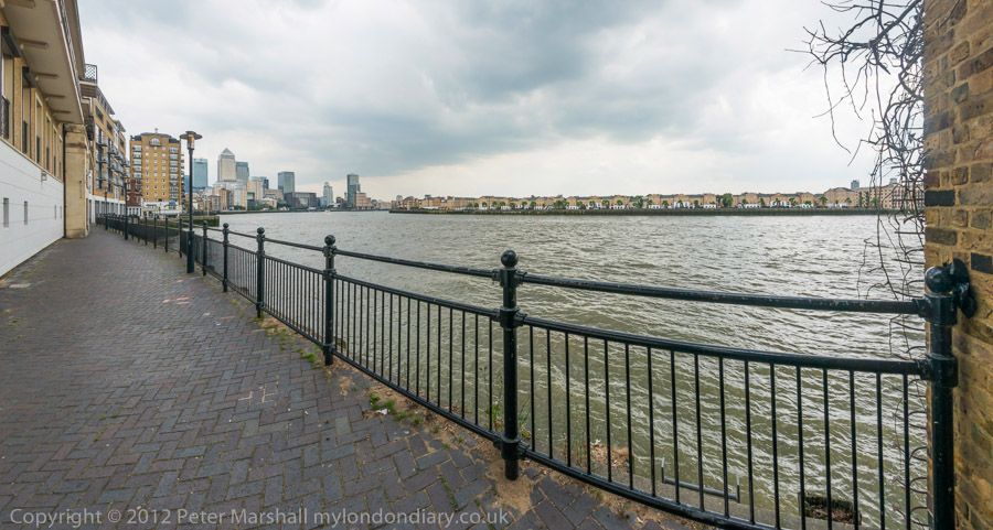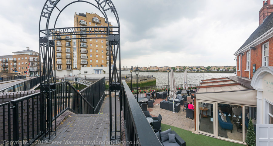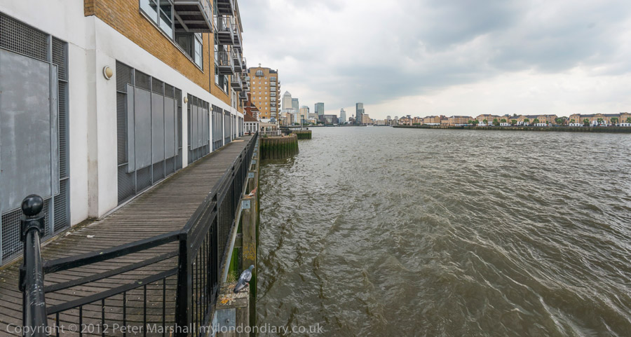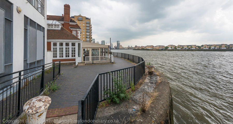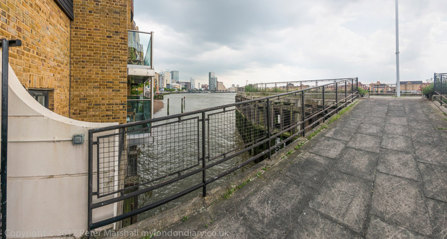 A short section of the Thames Path at the back of Narrow St
