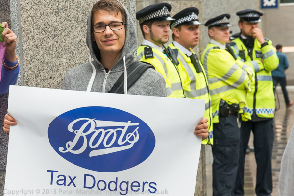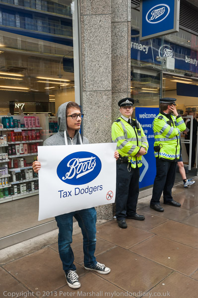 A line of policemen stood outside Boots, and there were more inside and around the corner and in some vans