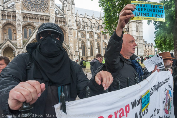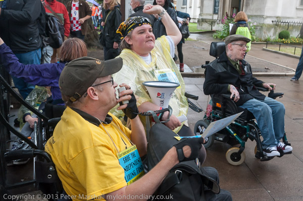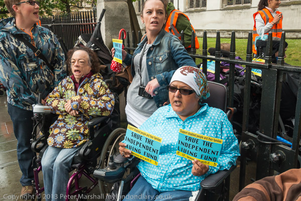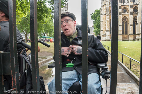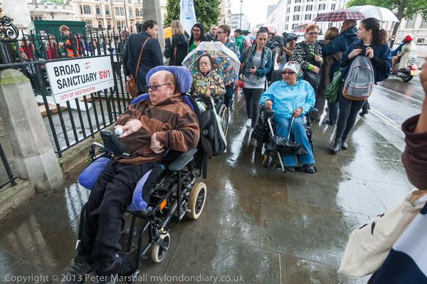 Many of the disabled protesters were outside the fence