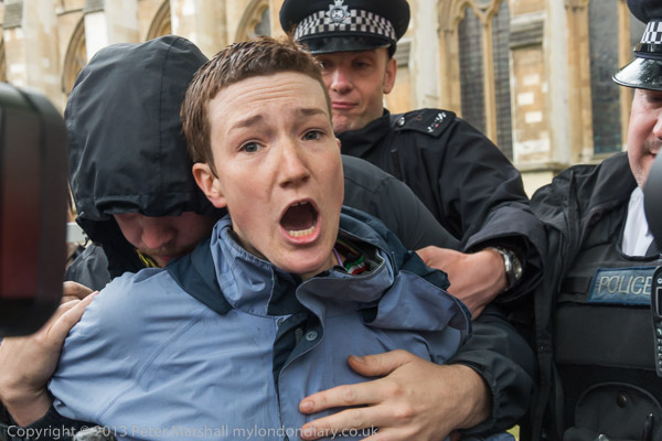 but the police pull the protester away