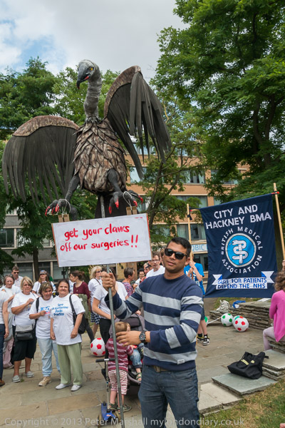 A vulyutr - Get your claws off our surgeries and City and Hackney BMA banner