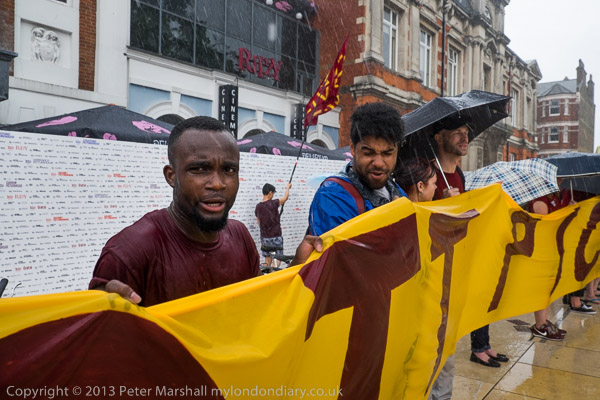 When the rain eased off a little I came out of Brixton station and made my way to the picket line