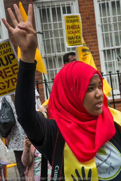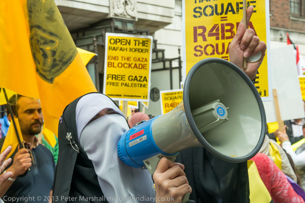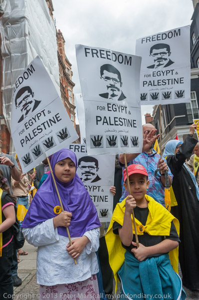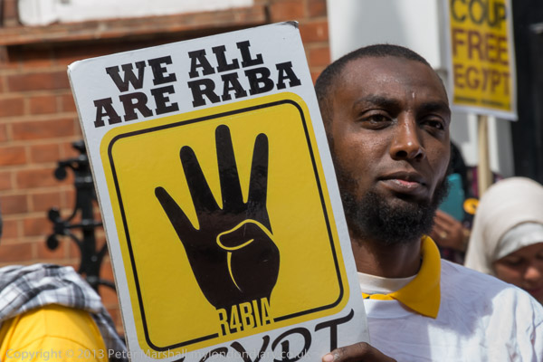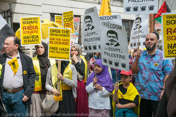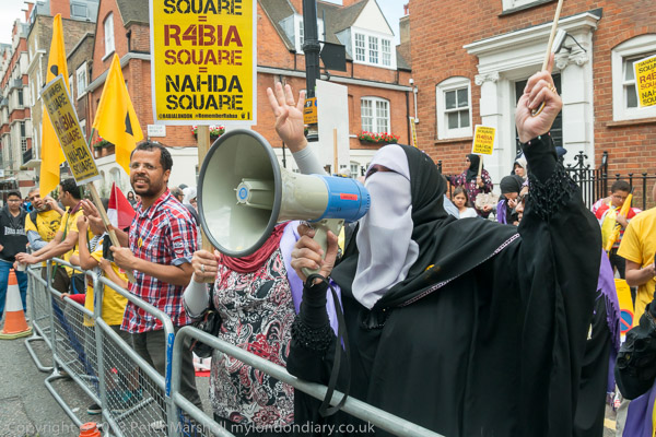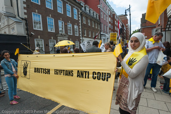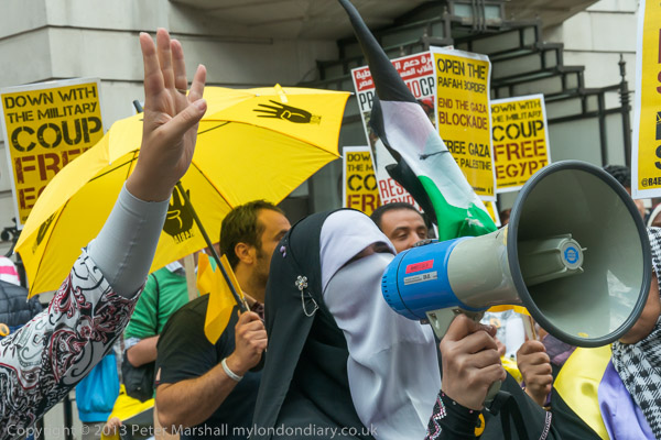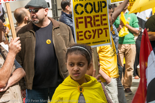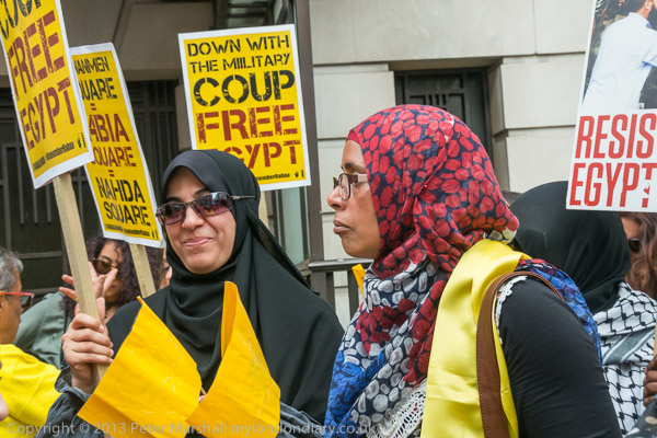 Most of the placards said 'Down with the Military Coup, Free Egypt'.