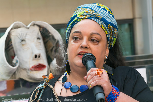 Zita Holborne also read a poem - with 'Teresa May' looking over her shoulder