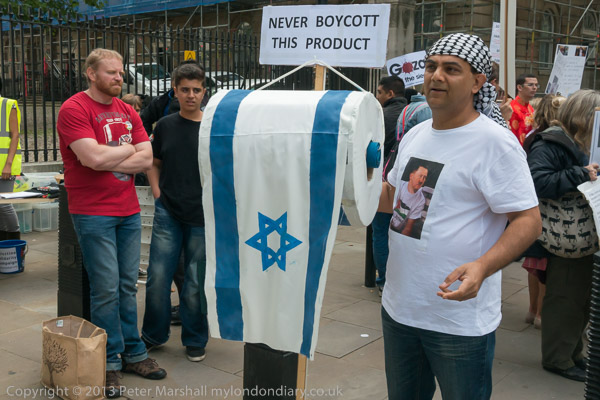 There was some discussion about the large toilet roll of the Israel flag with the message 'never Boycott this product'