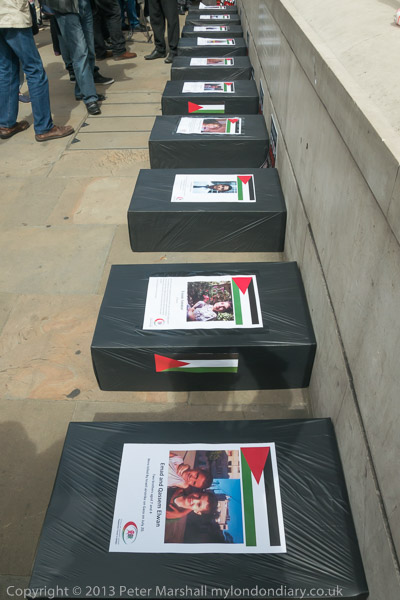 There was a row of black boxes repersenting coffins and the names of children killed.