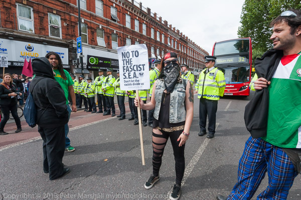 Police had formed a line to block the road as a small group of SEA supporters had already arrived on the other side