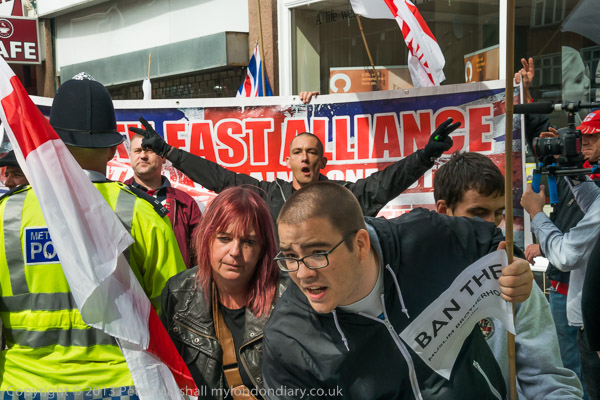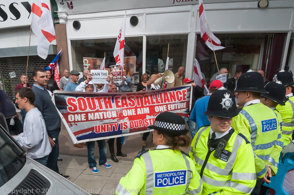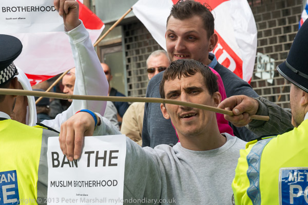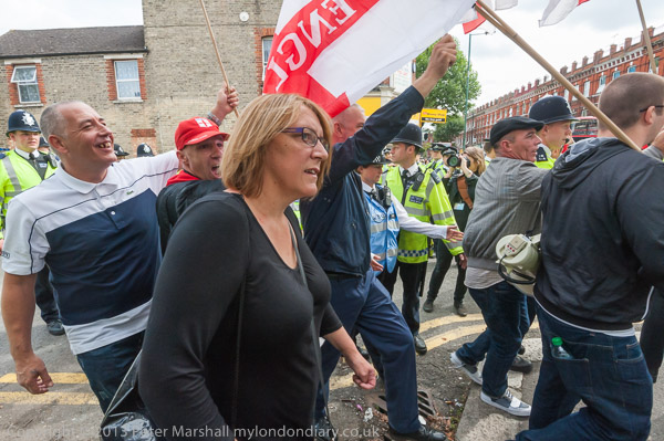 Eventually police reacted to the violent attacks with flags - by forcing photographers further back!