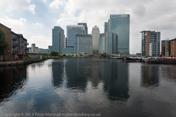 along the riverside path to the Blackwall Entrance, across to Poplar Dock