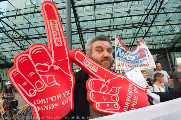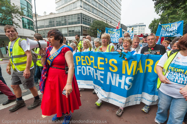 The march was led by Rehana Azam and the main banner carried by some of the '300 milers' who had made the whole march in support of saving the NHS from privatisation. They see the the Health and Social Care Act as having opened up almost the whole health service to privatisation, and making other measures such as TTIP able to force this to happen.