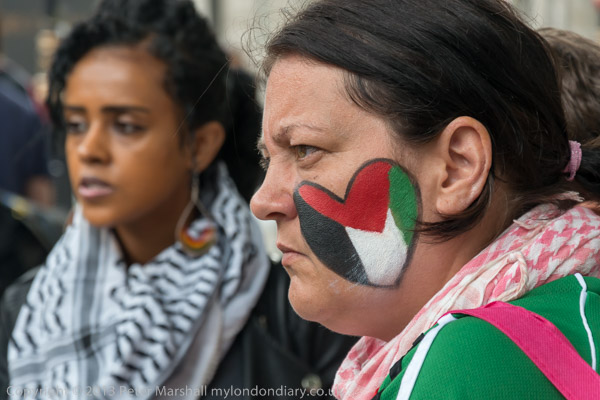 Around 30 people gathered at Downing St to walk through London and protest outside shops which support Israel, calling for a boycott of Israeli goods. They intended to end their protest outside Tony Blair's house off the Edgware Rd.