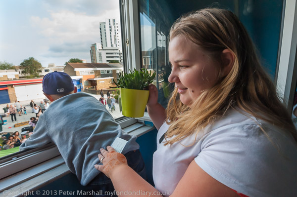 The event was billed as a party to celebrate a year of Focus E15 Mothers fighting to stay in London after Newham council cut off the funding for the hostel in which they were housed and East Thames Housing who ran it issued them with eviction notices. Newham told them they could only be rehoused in Birmingham or Hastings or anywhere except where they wanted to be in London, close to families, jobs and support services. Their personal fight has turned into a wider campaign for housing for all, for social housing in London and an end to the displacement of low income households from the capital, with the slogan 'Social Housing not Social Cleansing'.