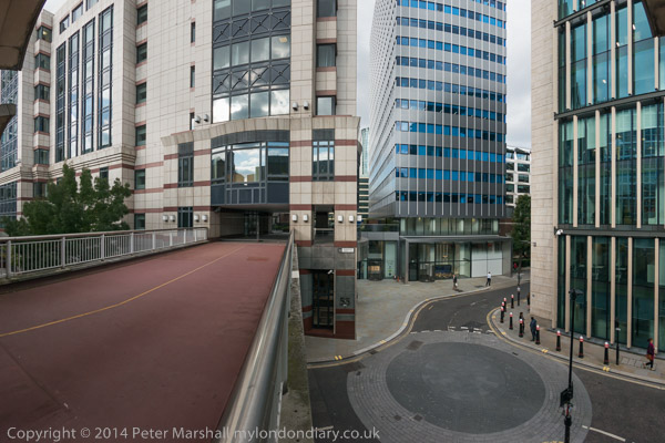and then up and around a little on my way to South Quay Station.