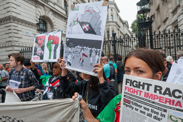Rolling Picket against supporters of Israeli violenceDowning St & Whitehall, London. Sat 6 Sep 2014 |