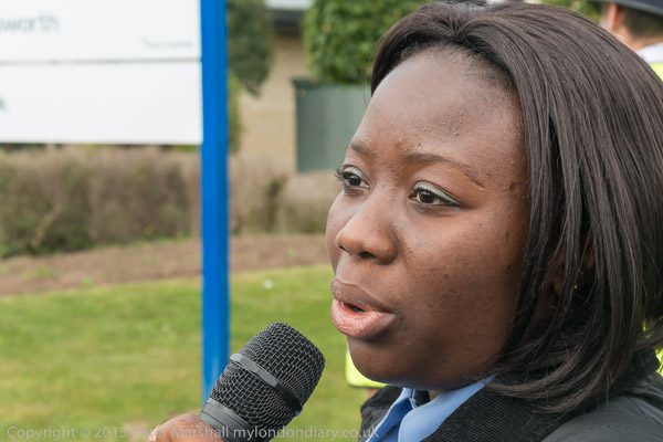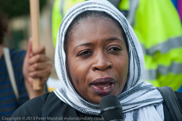 A campaigner speaks on behalf of the woman on the left, who has nowhere to go