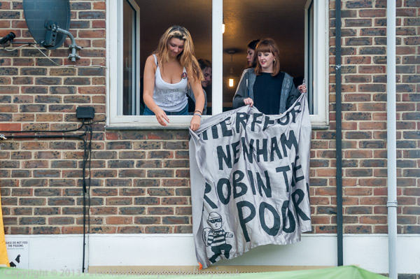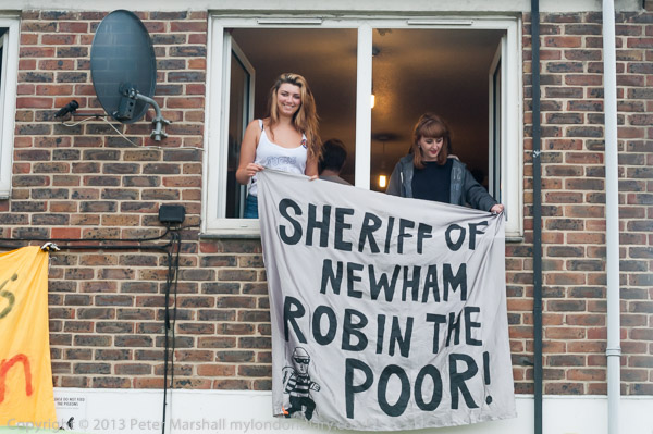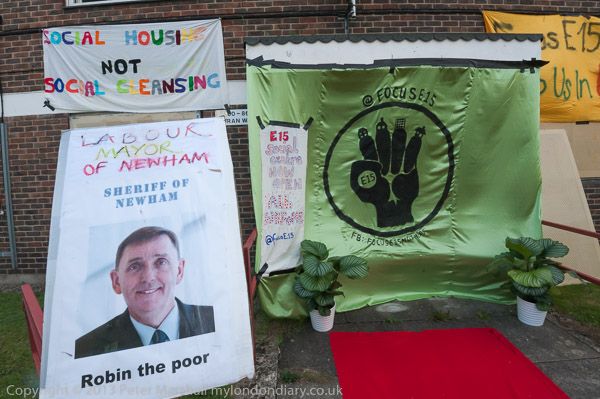 and a banner for the 'Sheriff of Newham Robin the Poor'