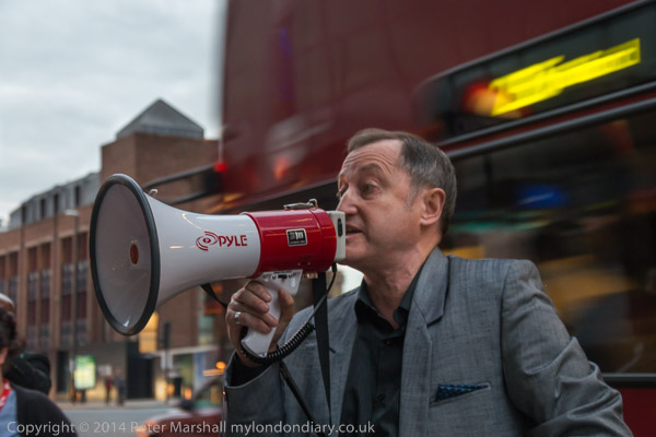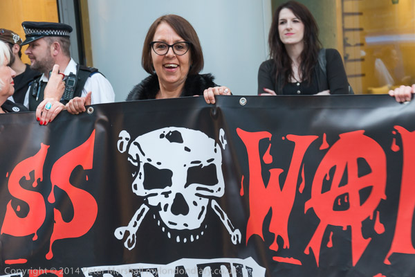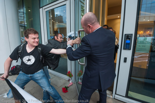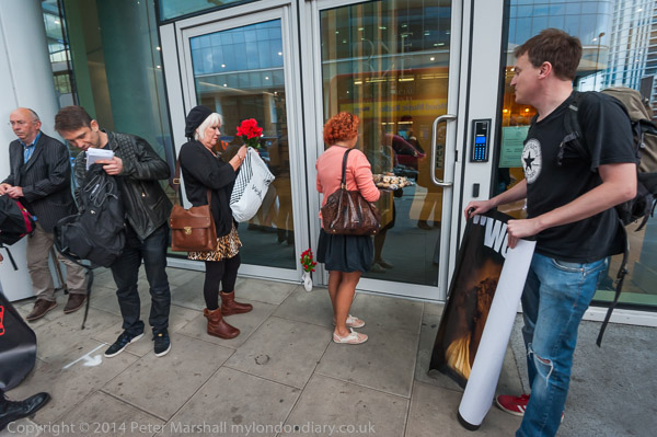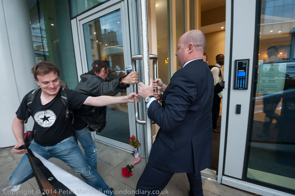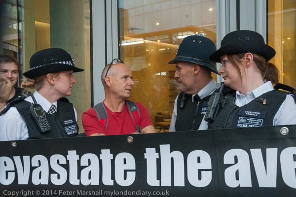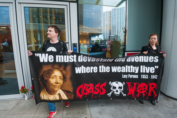 The protesters set up in front of the rich door on Aldgate High St as usual