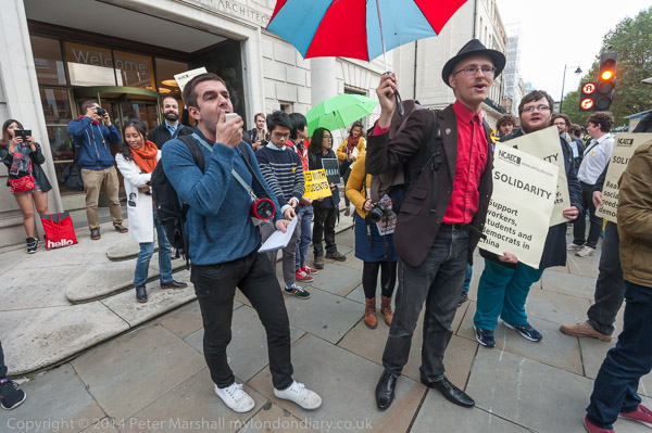 A Chinese activist talks with Daniel Cooper of the National Campaigh Against Fees and Cuts