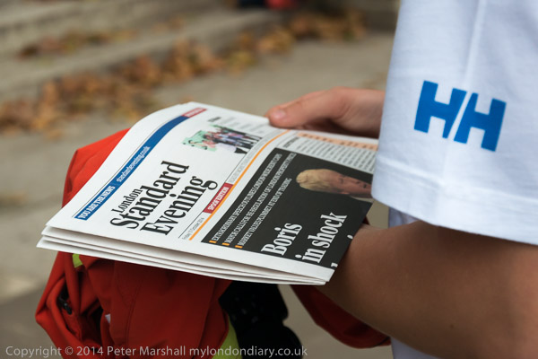 Bags full of the 'London Standard Evening' with headline 'Boris in shock housing U-turn'