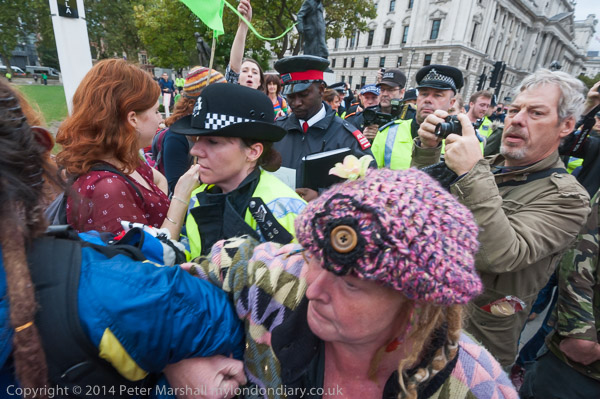 and there is a great deal of argument. The police stop protesters intervening and try to calm things down