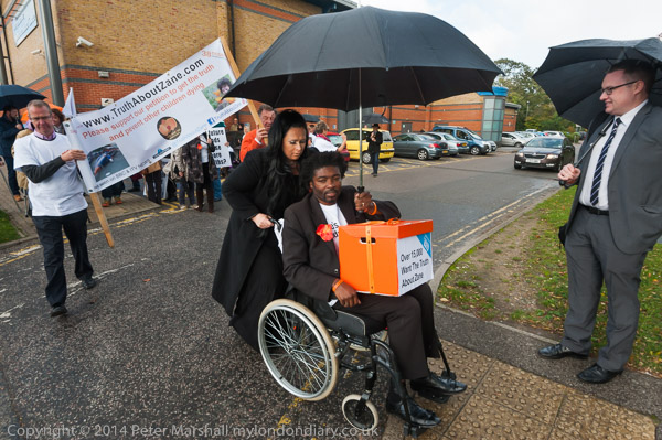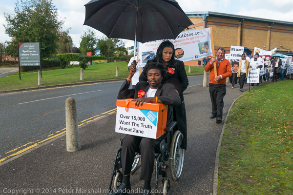 Zane's parents, family members and 38 degrees campaigners met at Spelthorne Leisure centre, where a couple of TV crews had come for the event