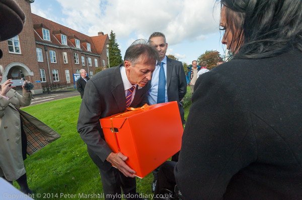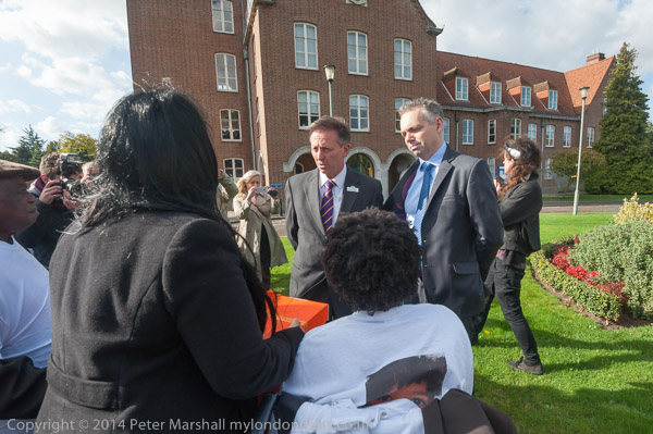 Spelthorne Chief Executive Roberto Tamborini and a colleague came to meet the family and other protesters