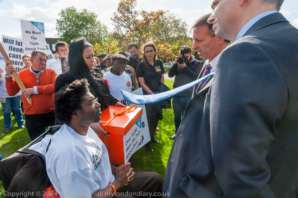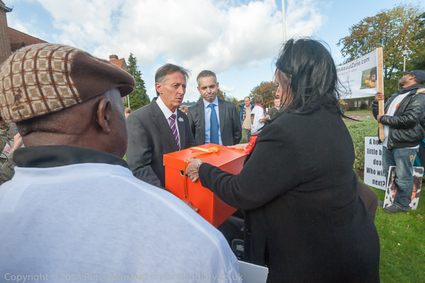 outside the Spelthorne Council offices in Staines, and to answer questions and take the petition.