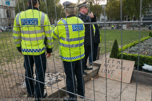 People were being arrested for being on the grass at Parliament Square when I arrived. It's hard to understand why this should be an offence.