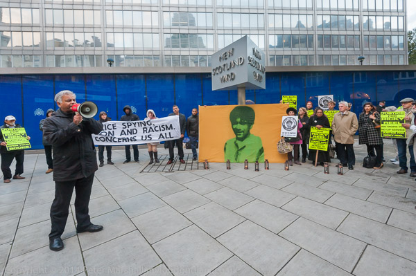 Suresh Grover of the Southall Monitoring Group with a megaphone