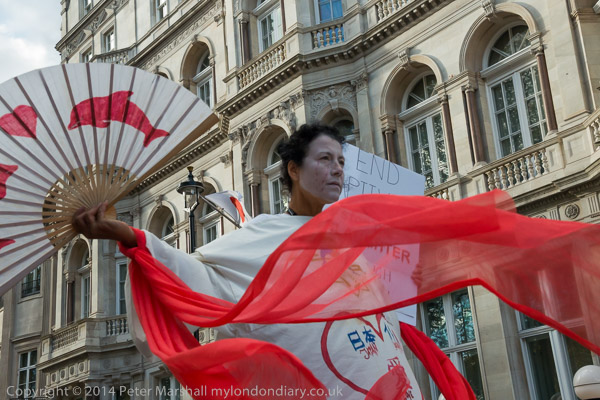 As on other Fridays, after protesting for an hour or so outside the Japanese embassy they left, on their way to carry out a further protest outside the London offices of TEPCO in Berkeley Square.