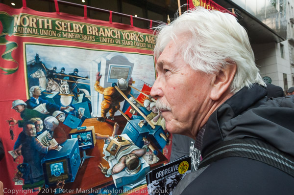 Eventually he backed down and the protest continued, going on to a fourth office building, where after a few minutes the protest ended, with the union members marching back to Fleet St.