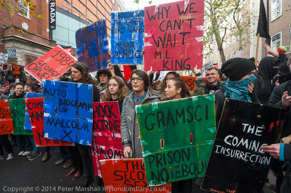 Students in Britain demonstrated at the Mexican Embassy of the dissapearance and probable massacre of 43 college students in Iguala on 26 September who appear to have been arrested by police and handed over to a local crime syndicate to be murdered. Although some of those protesting had posters calling for them to be found, there would appear to be very little real chance they are still alive.