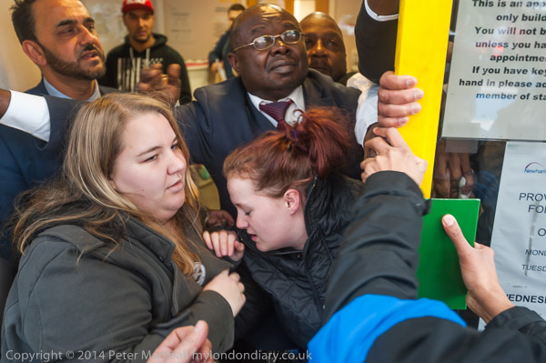 I was left outside with most of the Focus E15 supporters and could only follow what was happening inside through the glass doors and the windows of the reception area. It was made a little more difficult as I wanted to respect the privacy of other clients of the housing office, which restricted my view further.