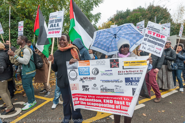The protesters were outside the administration building - and had to shout loud to be heard by the detainees