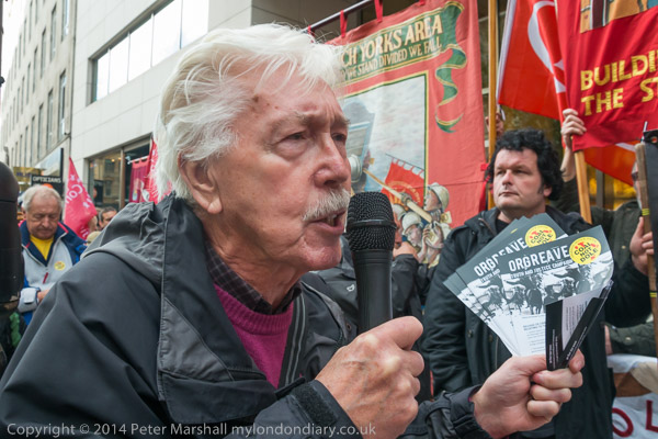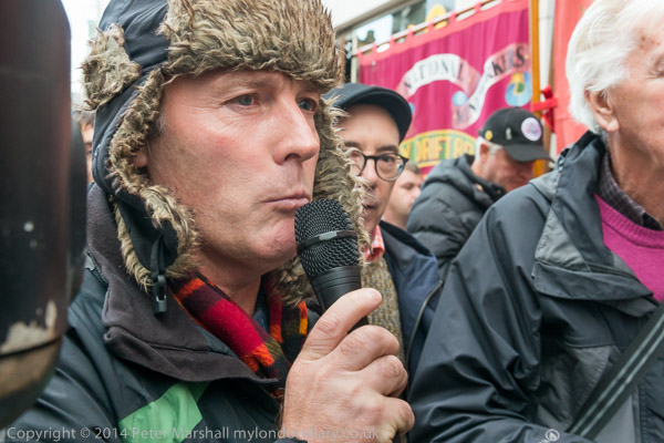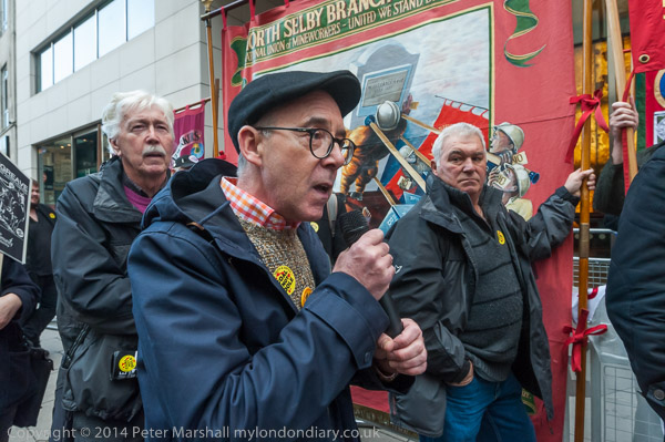 A former miner speaksat the Orgreave Truth and Justice Campaign protest outside the IPCC