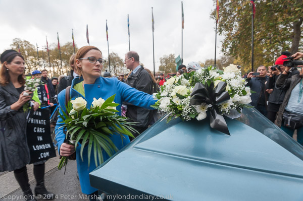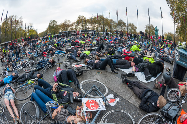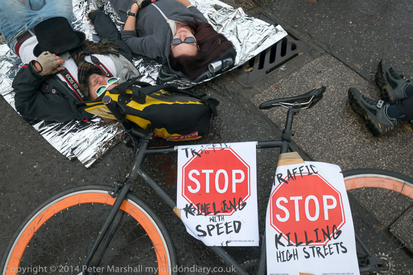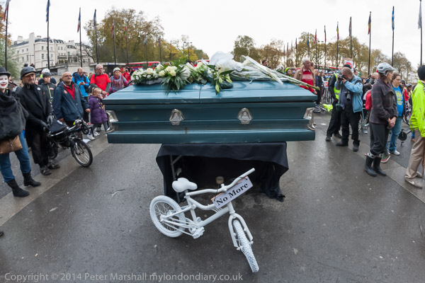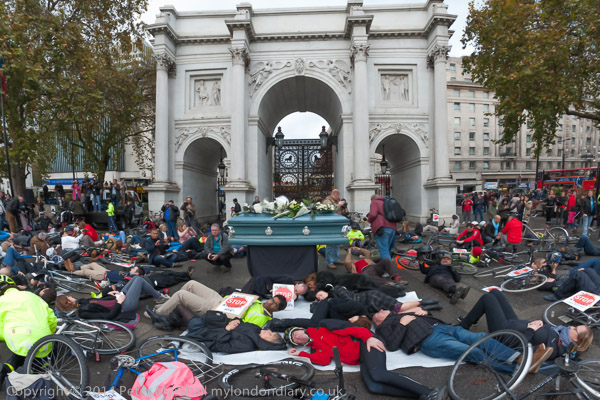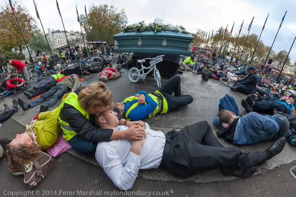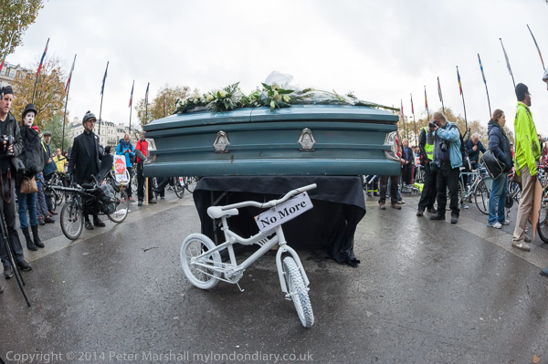 The 'die-in' with coffin and 'ghost bicycle'