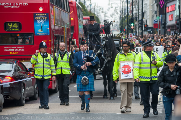 The funeral procession goes down Oxford St