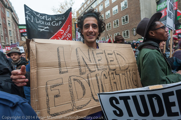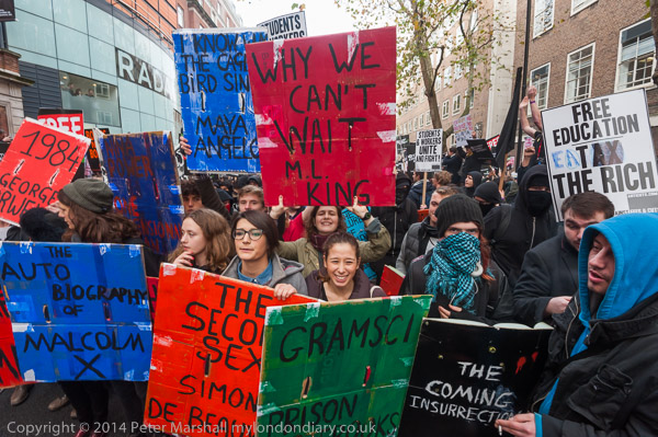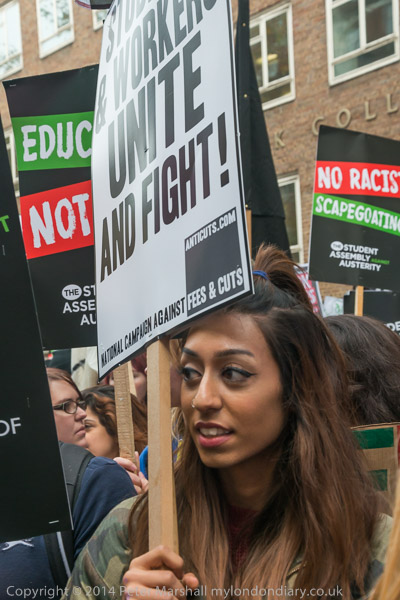 'Students & Workers Unite and Fight' placards from the National Campaign Against Fees & Cuts
