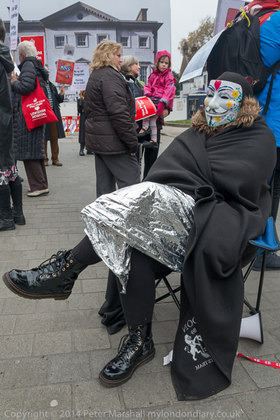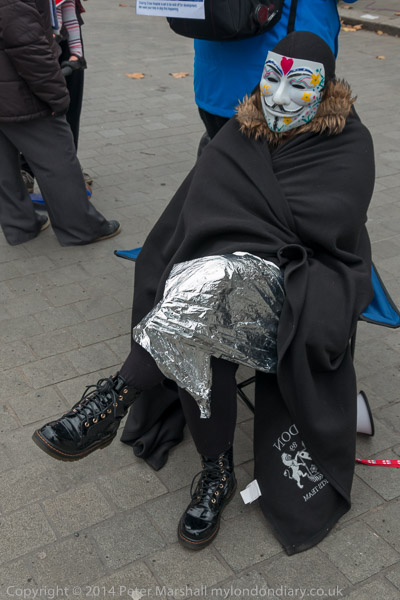 One of those who stayed overnight on the vigil is still wraped up in a space blanket and cape