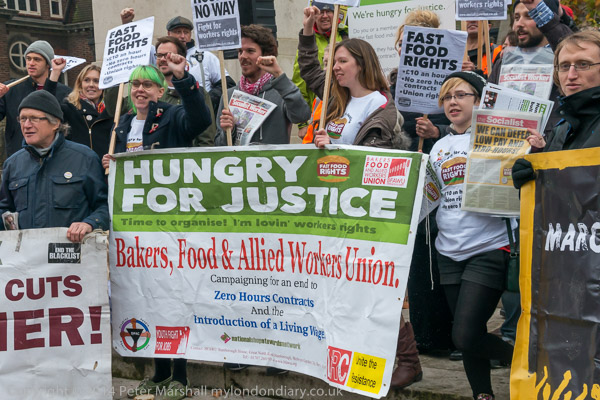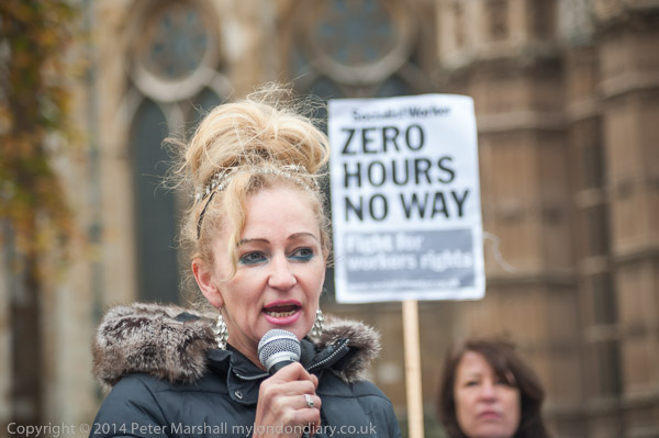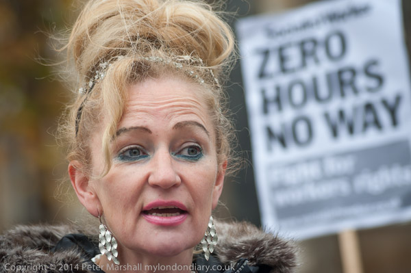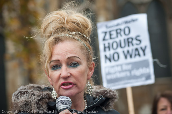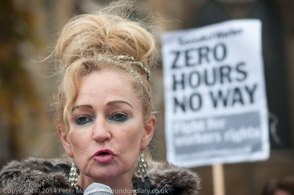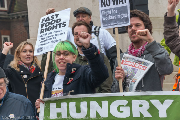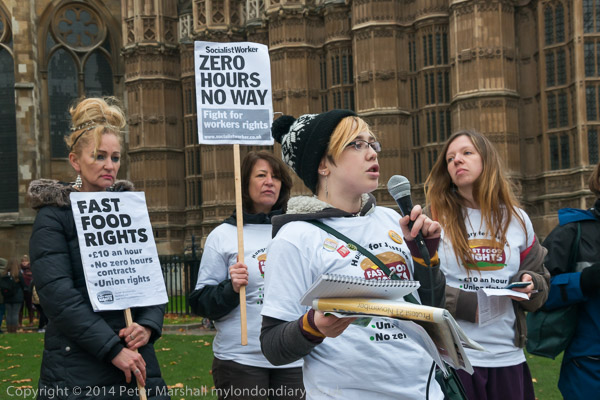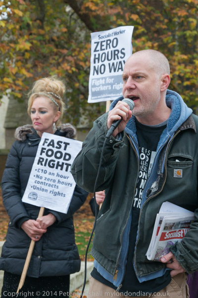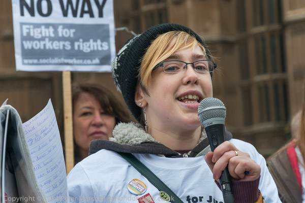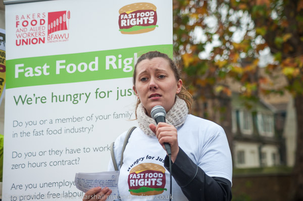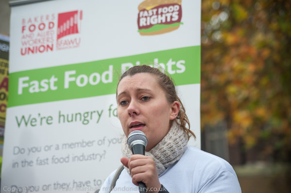 Sarah Woolley of the Bakers Unions (BFAWU) speaking at the Fast Food Rights rally