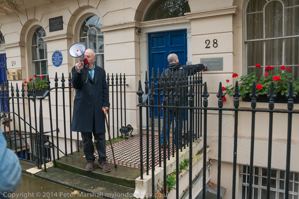 Ian Bone shouts up at £7m Fitzroy Square home of Griff Rhys Jones who has probably gone away for the weekend.