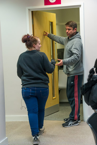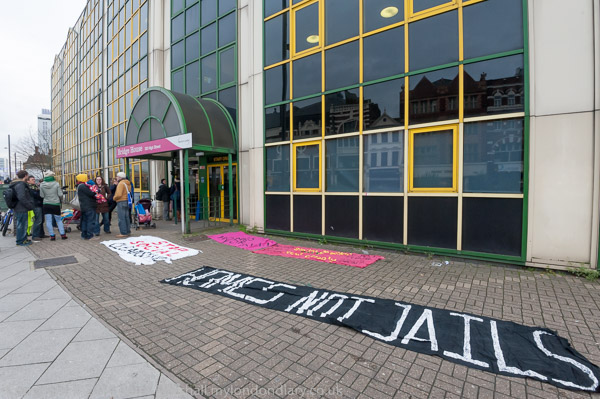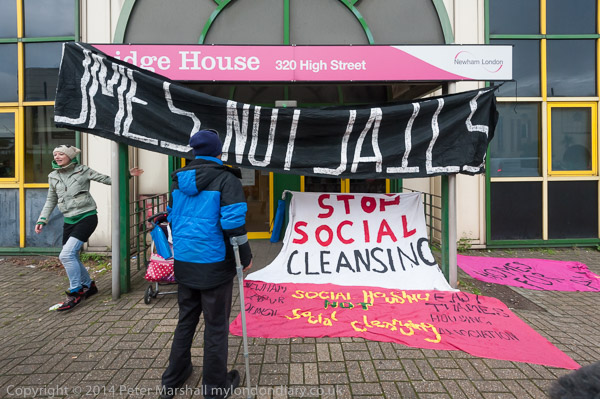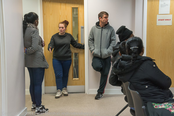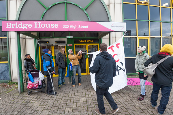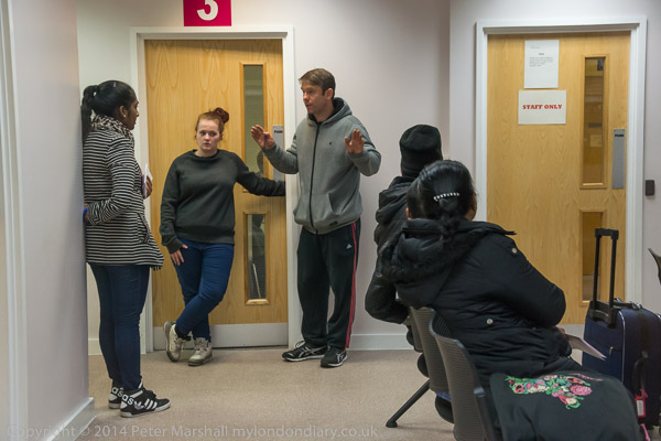 People arrive for interviews and find the door is locked. Someone from Focus E15 eventually gets those inside
