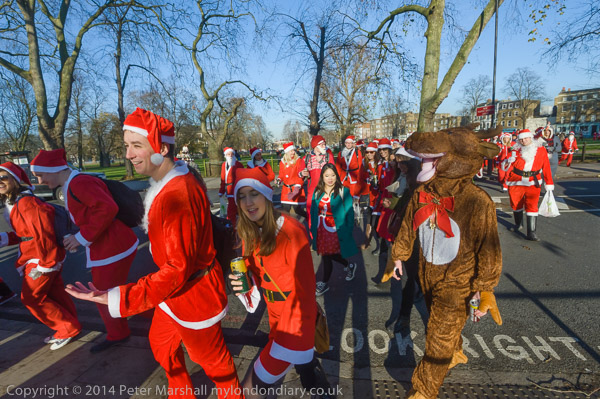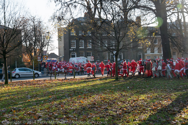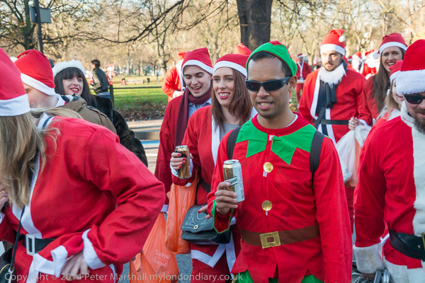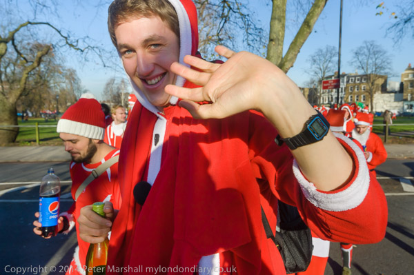 I was on my way to an education march, but had seen that one of the Santacon routes was starting from here
