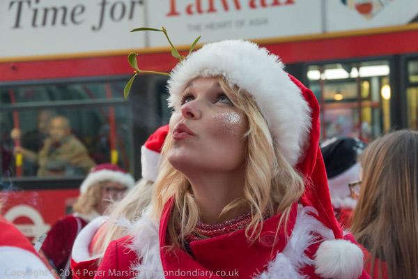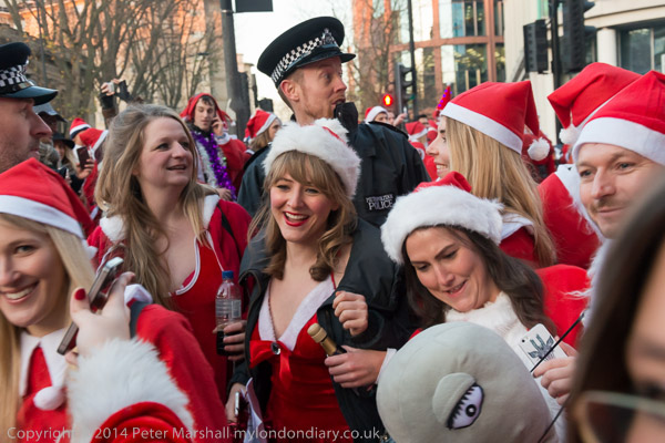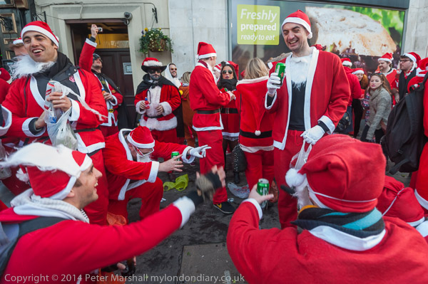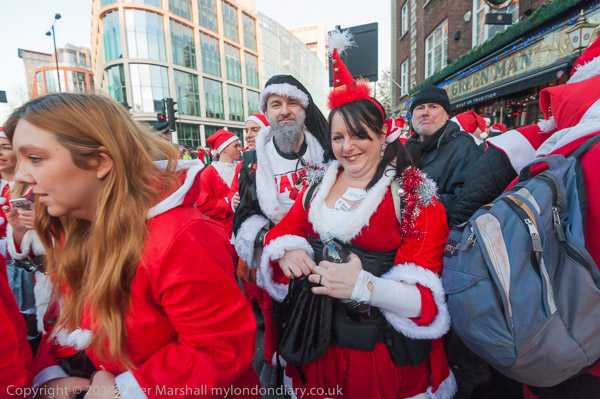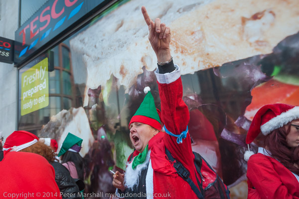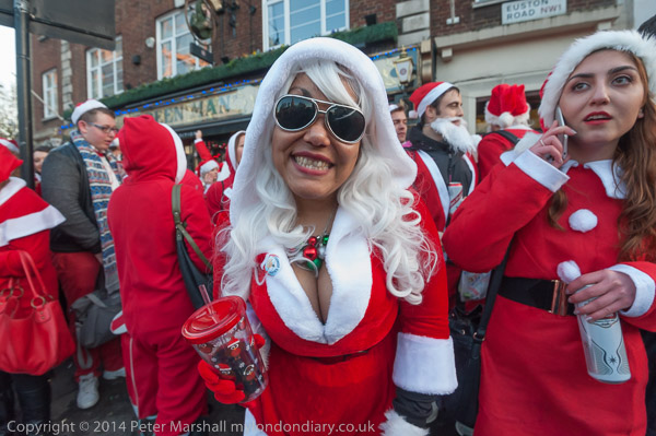 I caught up with the North London Route of Santacon on the Euston Road at Great Portland St