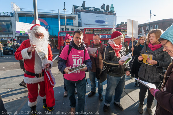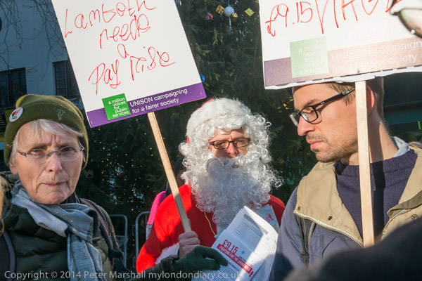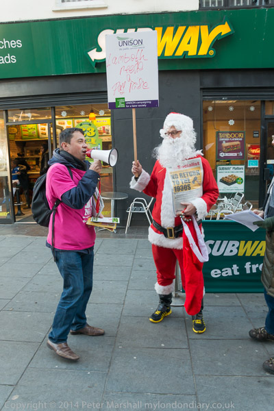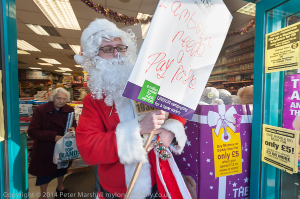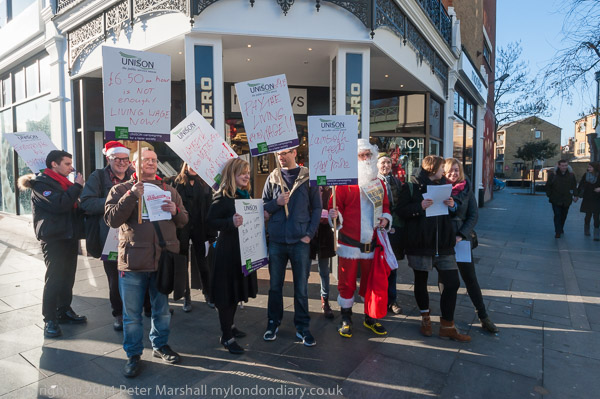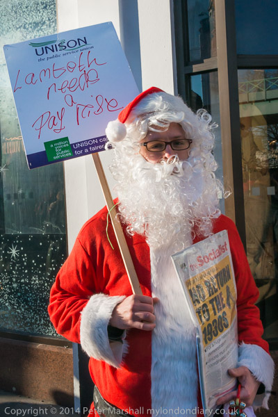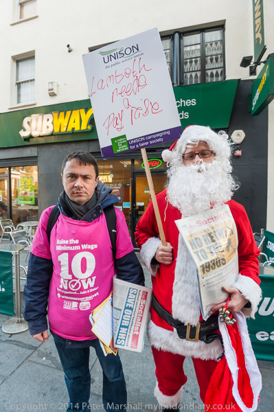 Unison had provided a Santa costume and placards. One protester had a t-shirt calling for the minimum wage to be raised to £10 now