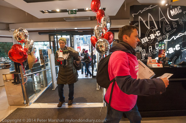 and continued the protest outside before moving on to other shops that don't pay staff a living wage.