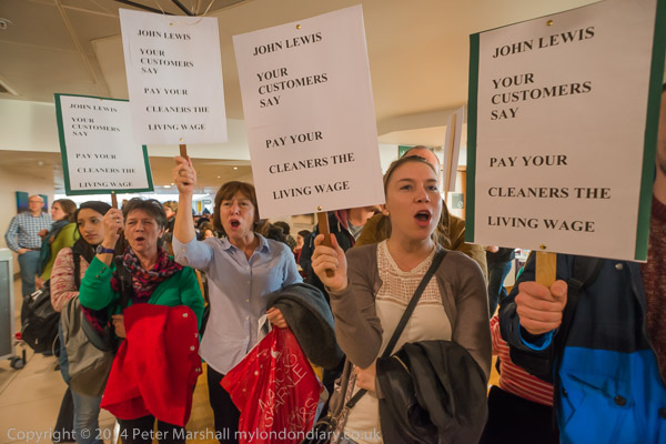 Cleaners Xmas Protest in John LewisJohn Lewis, Oxford St. Sat 13 Dec 2014 |