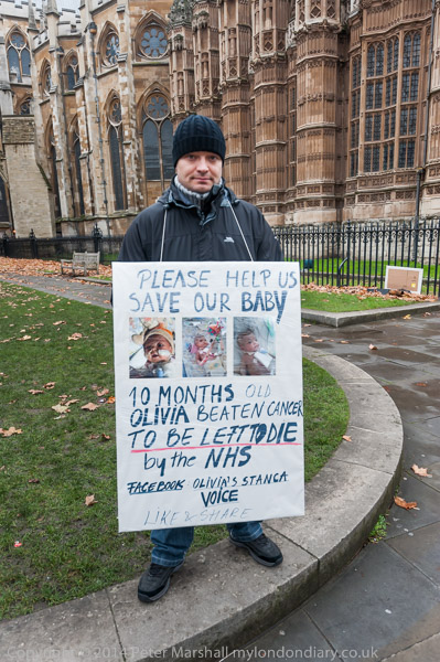 Olivia Stanca's father was protesting opposite Parliament. Olivia was born in February 2014 with a kidney cancer but otherwise healthy