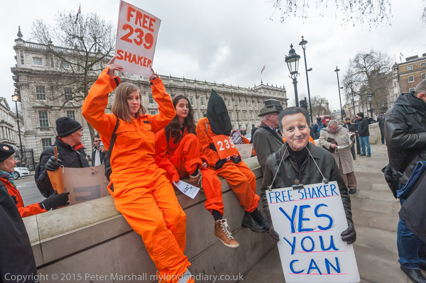 The Free Shaker Aamer campaign protested for 4 hours at Parliament calling for the urgent release of London resident Shaker Aamer from Guantanamo, where he has been held and regularly abused for 13 years without charge or trial.